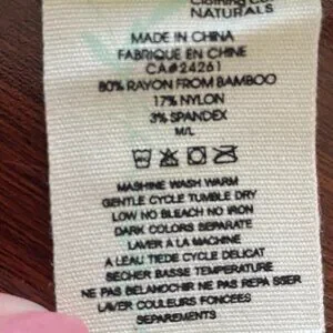 80% Rayon from Bamboo, 17% Nylon, 3% Spandex.