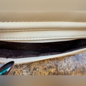 •Discover the elegance of the Aldo Cream Shoulder Bag, featuring a sophisticated studded butterfly motif. Crafted with attention to detail, this bag combines a whimsical design with a sleek, rectangular shape, making it a perfect accessory for any occasion.