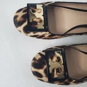 Gigi Calf Hair Block Heel Pump. Experience the elegance of Tory Burch with these chic flats, featuring a sophisticated leopard calf hair with gold hardware. The classic rounded toe and slip-on design ensure both style and comfort, making them a versatile addition to any wardrobe. Perfect for any occasion, these loafers effortlessly blend fashion with functionality.