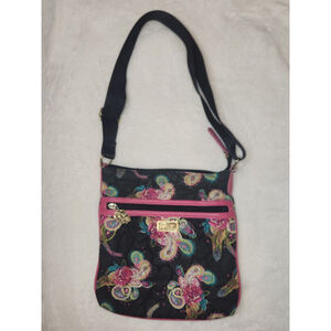 Betsey Johnson Black Pink Floral Medium Crossbody Bag