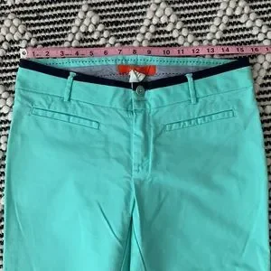 Stylish teal ankle pants. Perfect for casual or dressy occasions. Comfortable fit.