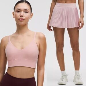 NWT Lululemon Set Varsity Pleated Skirt and Scoop Neck Bra in the color Pink Haze