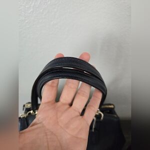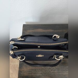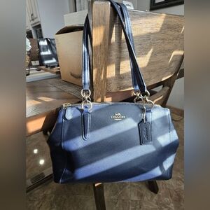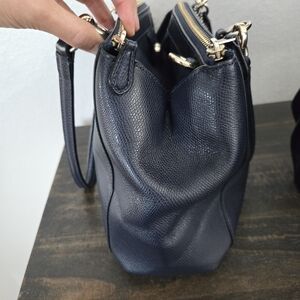 This Coach shoulder bag in a striking blue color showcases a sophisticated silhouette crafted from high-quality pebbled leather. Its versatile design, complemented by silver-tone hardware, makes it perfect for both casual and formal settings. In great condition! Missing crossbody strap.