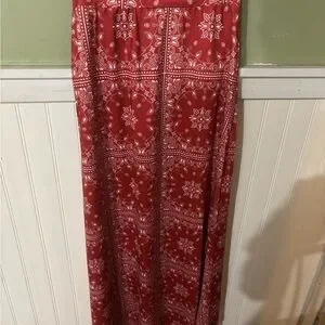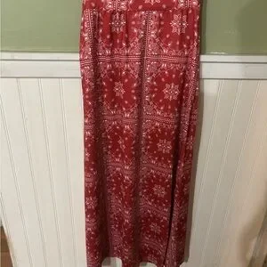 Red and White Maxi Skirt with Bohemian Vibe - elastic waist