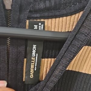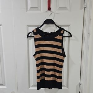Gabrielle Union New York & Company Black and Tan Striped Sweater Tank Top