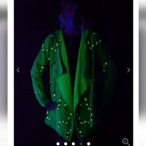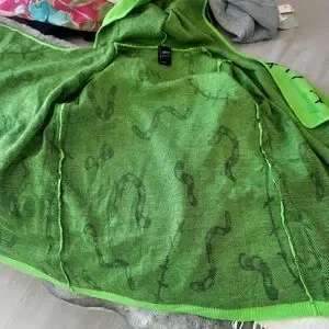 Vibrant green cardigan with playful black accents. Features a cozy hood. Perfect for adding a pop of color.