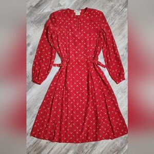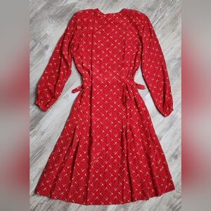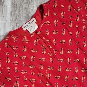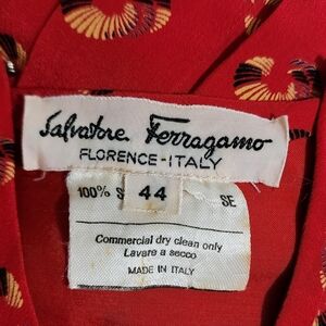Salvatore Ferragamo Vintage Red All Over Print Dress 100% Silk 80s Size 44