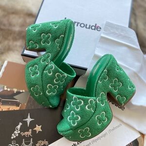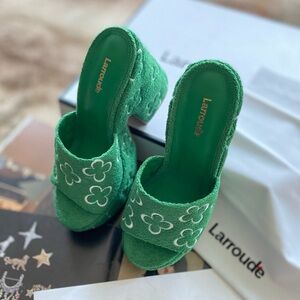 A lofty platform and chunky block heel add statement-making height to a retro slide sandal that will complement your trendsetting looks.