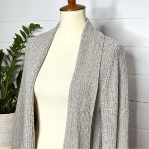 Eileen Fisher Wool Blend Ribbed Open Front Cardigan! 83% wool, 17% nylon. Stretchy & soft! Not itchy. Ribbed knit texture. Very relaxed, effortless chic!