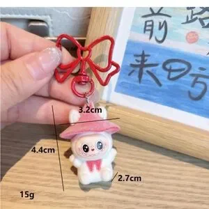 Charming pink keychain featuring an adorable character design. Ideal for kids to attach to bags or use as a playful accessory.