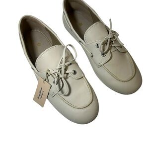 NWT Tommy Bahama Women's Preppy Nautical Boat Shoe. Versatile shoe that blends comfort and style. The color is a grey/white rather than cream.