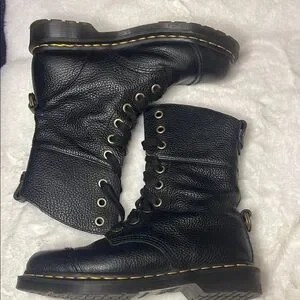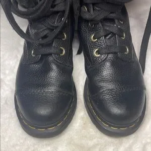 Dr Martens- Black Leather Militia Combat Boots -18 hole