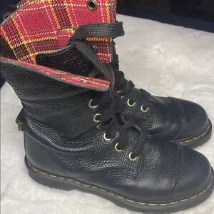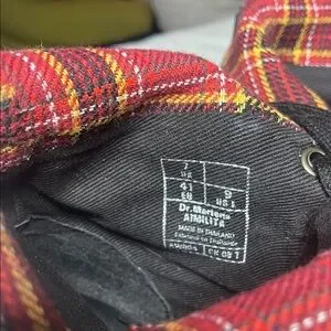Red plaid interior lining, can be worn tall or folded to expose plaid trim, great sole condition, worn in leather in EUC, comfortable, bounce sole, the original,