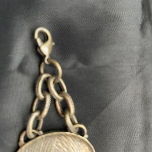 Vintage Avon NR Christmas oval link bracelet. Bracelet is antiqued gold tone metal. Metal aged to look old. The oval pictures are joined by double loops. This is marked Avon NR. There is a lobster clasp and an extension for adjusting length needed. 9” long. Item is in good pre-owned condition.