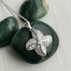 NEW, Sterling Silver CZ plumeria flower pendant necklace
