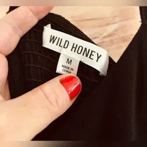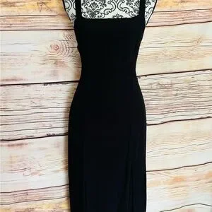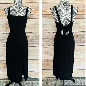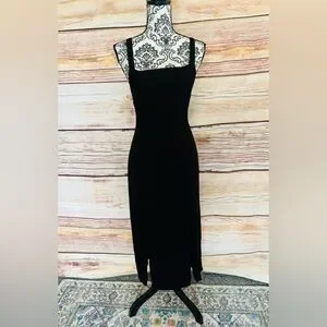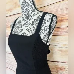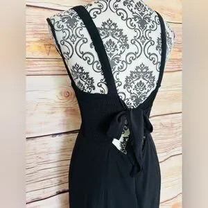 Wild Honey Black Square Neck Open Tie Smocked Back Sleeveless Maxi Dress Size M