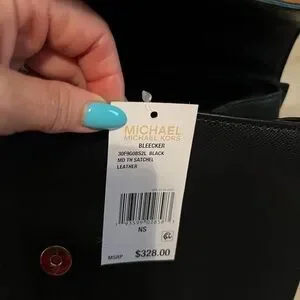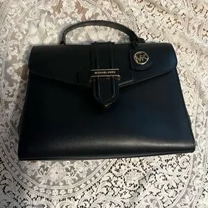 Elegant and stylish, this Michael Kors black leather bag is perfect for any occasion. Featuring a sleek design with gold accents, it adds a touch of sophistication to your outfit.