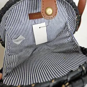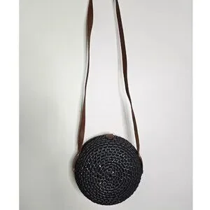NWT J Crew Round Rattan Floral Crossbody Bag Beautiful Rattan Purse Black L8652