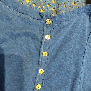 An adorable Long-sleeve Henley top with pretty lace detail and buttons. Size large