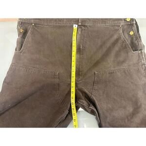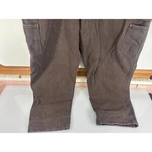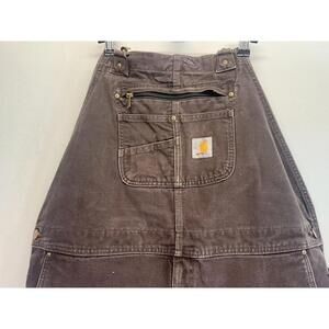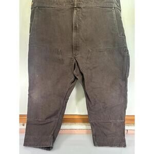 The Carhartt Brown Denim Overalls 52/30 are durable and comfortable, designed for men who wear a size 52 waist and a big and tall fit. Made from cotton denim in a solid brown color, these overalls feature a classic straight leg style with a 30-inch inseam. They also include convenient pockets and easy care instructions, making them a versatile and practical choice for everyday wear in any season. (1114)