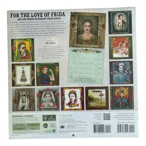 The "For The Love Of Frida 2016 Angi Sullins Art Calendar" is a collectible paper calendar featuring the unique and captivating art of Frida Kahlo. Printed in Republic of Korea this calendar showcases exquisite illustrations and designs inspired by the renowned Mexican artist. Each month highlights a different piece of Frida Kahlo's artwork, making it a delightful and intricate addition to any art lover's collection. Perfect for admirers of Frida Kahlo or those looking to add a touch of charm to their calendar display.