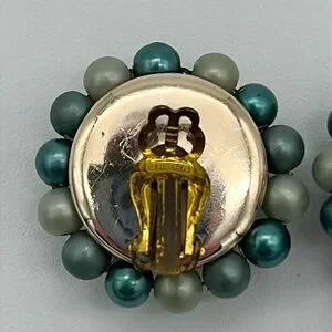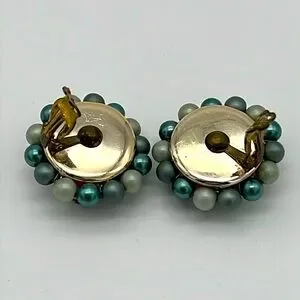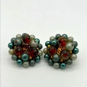 Vintage Multicolor Cluster Bead 1950’s Clip-On Earrings Marked Japan
