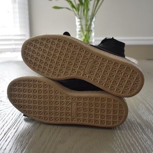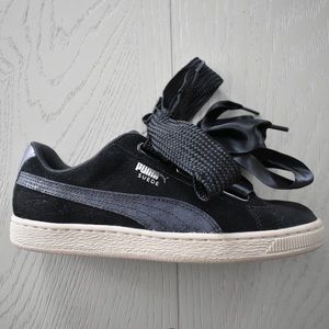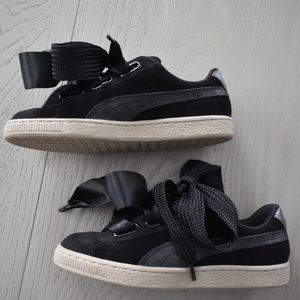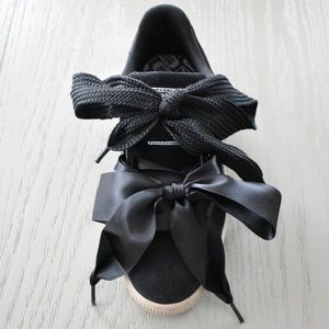 Puma Sneakers Black Satin Bow White Sole Size 8