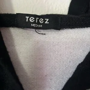 Chic black hoodie by Terez. Features a unique graphic design. Perfect for a trendy look.