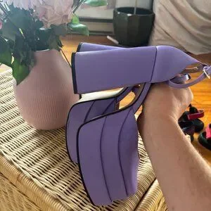 Sweet pair of pompous purple platforms that have tons of life left. Two small marks are pictured, besides that these shoes look and feel like new.