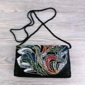 Vintage Beaded Art Deco Style Crossbody Purse Shoulder Bag Multi Color Black Red