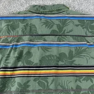 This Salt Life men's button-down shirt features a nautical-themed design with a Hawaiian twist, perfect for casual wear or a party. The shirt has short sleeves, a collared neckline with a button-down style, and a chest size of 45 inches, making it a size Large. Made from a comfortable cotton blend material, this multicolor shirt is machine washable and has a regular fit, suitable for various occasions like travel or casual outings. The design includes fish and Hawaiian elements, embodying a classic and beachy vibe perfect for the summer, fall, or spring seasons.