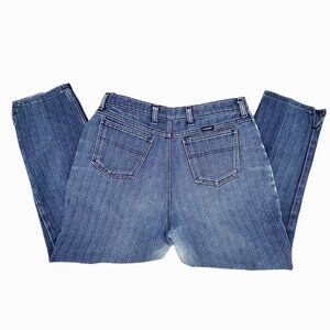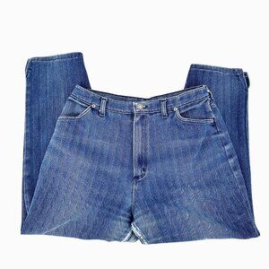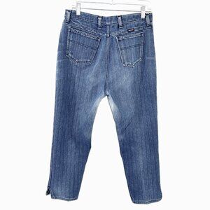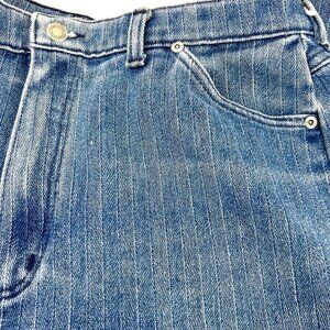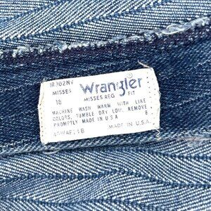 Unique pair of vintage Wranger jeans! Size 18 Misses, style MR302NV, MADE IN THE USA! Features a cool herringbone-like stripe pattern, 4 pockets, high rise. Wear in crotch/upper thigh area (see pictures) but otherwise in nice condition. Color(s) may vary slightly in pictures but are as close as possible. Vintage size so please see the measurements below.