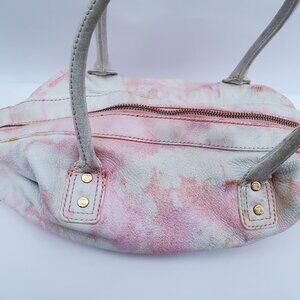 Don't miss out on this one! Lined in leather which is rare. Salmon peach pink orange yellow white ivory cream rainbow tie dyed ombre