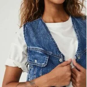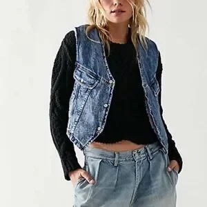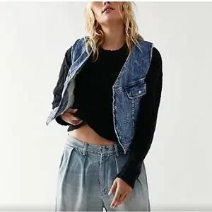 Free People/ We The Free Denim Florence Vest With Sherpa Lining. Size XS NWOT