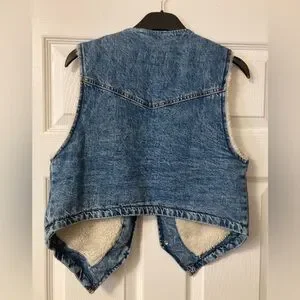 Free People/ We The Free Denim Vest With White Sherpa Lining Size XS