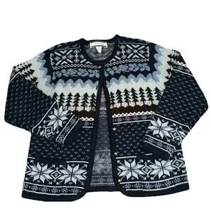 Crystal-Kobe Pine Tree Cardigan Sweater Vintage Ski Size Medium Y2K