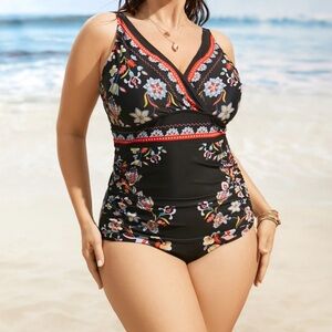 BloomChic Boho One Piece Black Floral Swimsuit Size 22-24 New