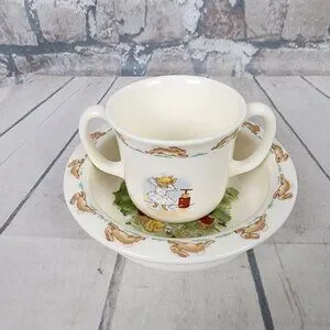 Royal Doulton Bunnykins Baby Bowl and 2 Handled Mug Set Earthenware Cream