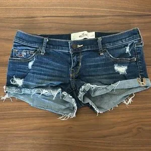 Hollister Women's Ripped Jean Shorts - Dark Blue