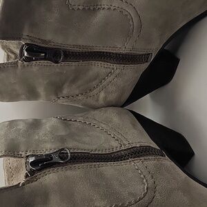 Step out in style with these chic suede ankle boots. Featuring a trendy fringe detail, these gray boots are perfect for any occasion.
