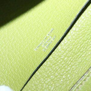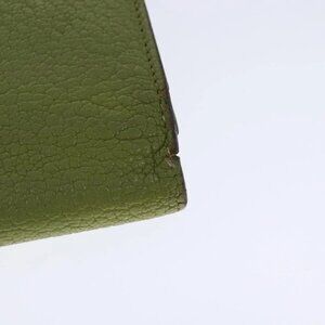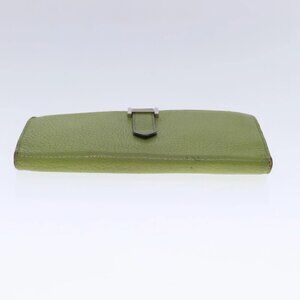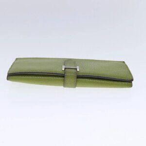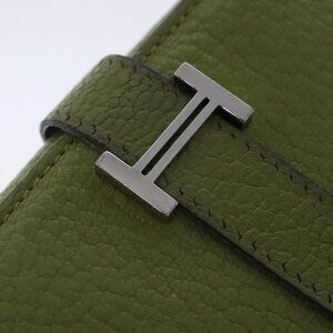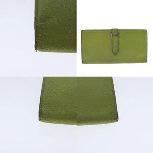 HERMES bean Souffl Wallet Leather Green Silver Auth bs18706