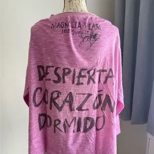 Oversize - Vibrant pink tee with bold black text. Magnolia Pearl branding on the back. Nice beach tee.