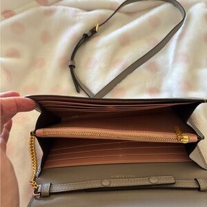 Tory Burch Taupe /gray Gold Crossbody wallet Clutch