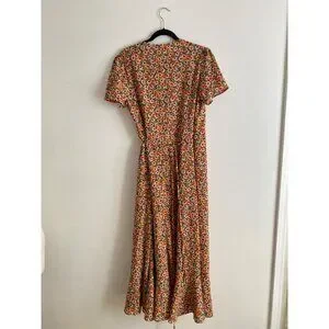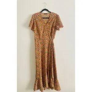 Floral Wrap Maxi Dress With Ruffled Hem & Short Sleeves By Prettygarden Size L
