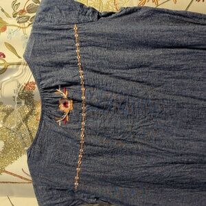 great with leggings and boots, or as a summer cover up! Cap sleeve, cream and orange embroidery with cute extra detail on the back!
