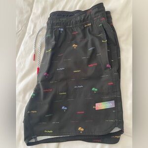 Gently used men’s bathing suit. Two front slant pockets, 1 back zippered pocket. 6 inch inseam, no interior liner.