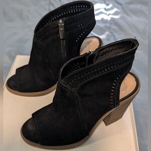 Step out in style with these chic black peep-toe ankle boots. Perfect for any occasion, they offer both comfort and elegance.