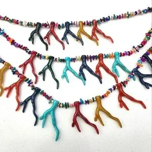 Color necklace with multicolored beads and coral-shaped pendants. Perfect for adding a pop of color to any outfit. New with Tag.