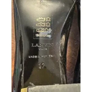 Lanvin cube-heel cap toe ballet pumps black patent leather women's size 37/ 7
