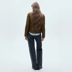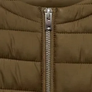 Worn once. Embrace the chill with a Green Puffer Jacket, featuring a lightweight quilted design that offers both warmth and style. This versatile piece is crafted from smooth synthetic fabric, ensuring comfort and ease of movement. Its minimalistic design makes it a perfect addition to any casual wardrobe.